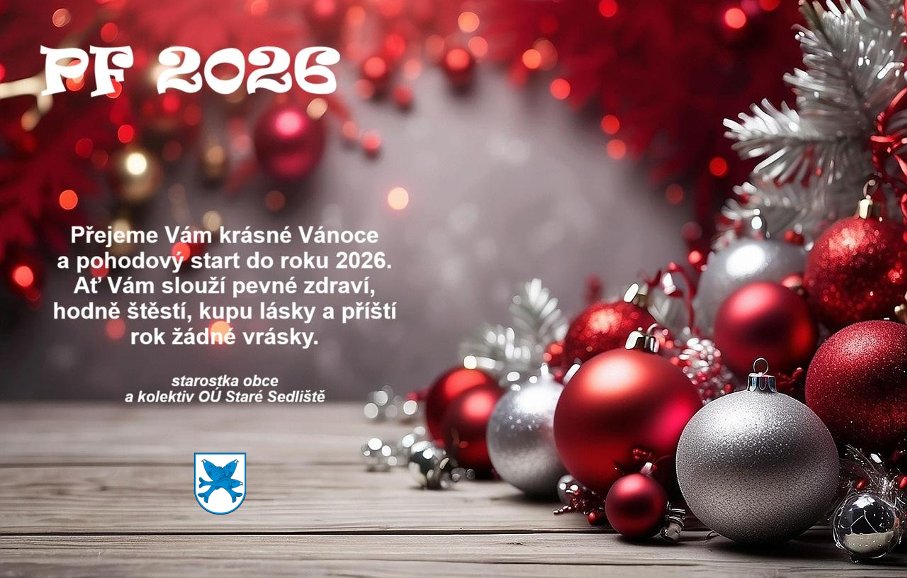 Přejeme Vám krásné Vánoce a pohodový start do roku 2026. Ať Vám slouží pevné zdraví, hodně štěstí, kupu lásky a příští rok žádné vrásky. Starostka obce a kolektiv OÚ Staré Sedliště.