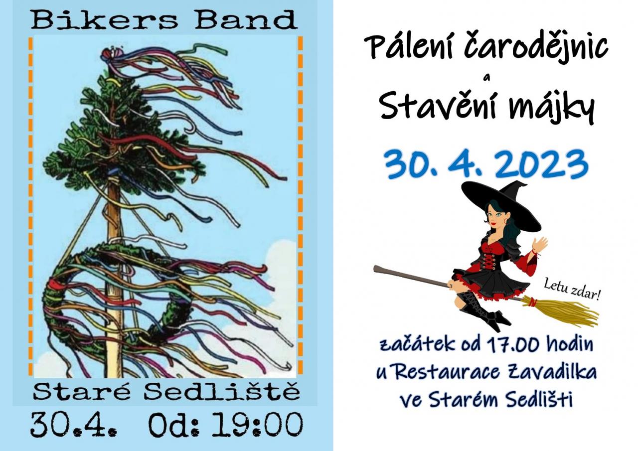 Obec Staré Sedliště a spol. Vás zvou na Pálení čarodějnic a stavění májky v neděli 30. 4. 2023 od 17.00 hodin u restaurace Zavadilka ve Starém Sedlišti. Od 19.00 hodin zahraje k tanci a poslechu Bikers Band.