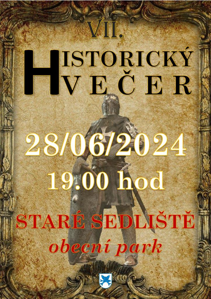 Obec Staré Sedliště Vás srdečně zve na VII. Historický večer, který se uskuteční v pátek 28. 6. 2024 od 19.00 hodin v obecním parku ve Starém Sedlišti. Pro gramem Vás bude provázet herold Libor Marek.